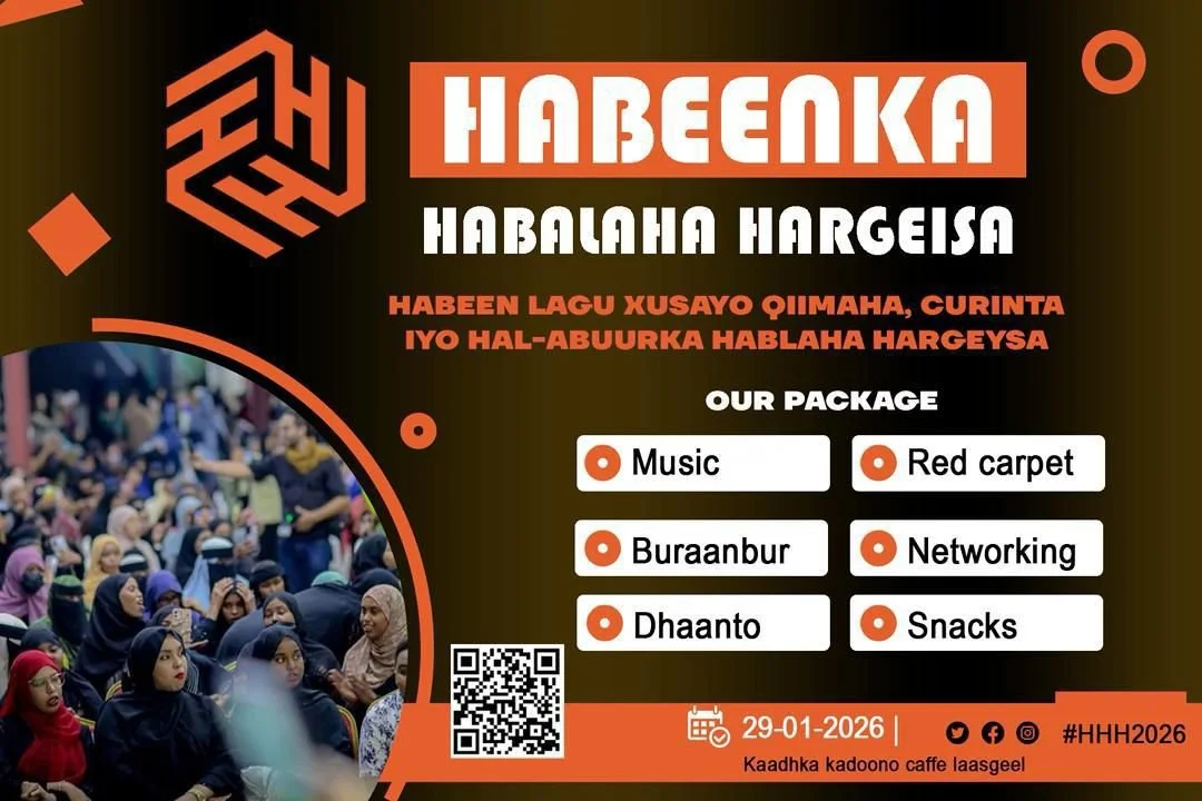Habeenka Hablaha Hargeisa (HHH 2026) is a vibrant cultural and social night celebrating women’s creativity, confidence, and community in Hargeisa. The event features live music, Buraanbur and Dhaanto performances, a red carpet experience, networking opportunities, and light snacks in a welcoming atmosphere.